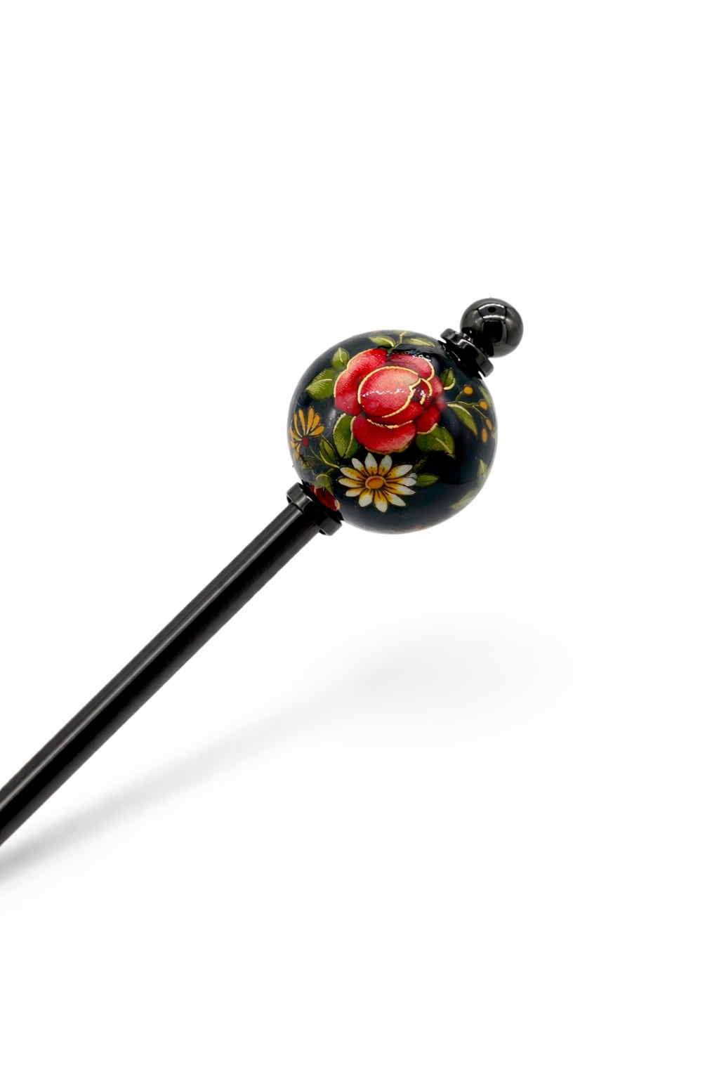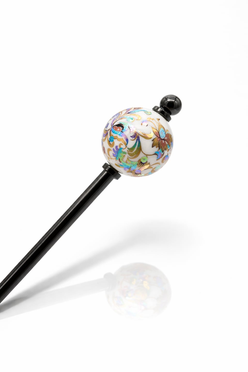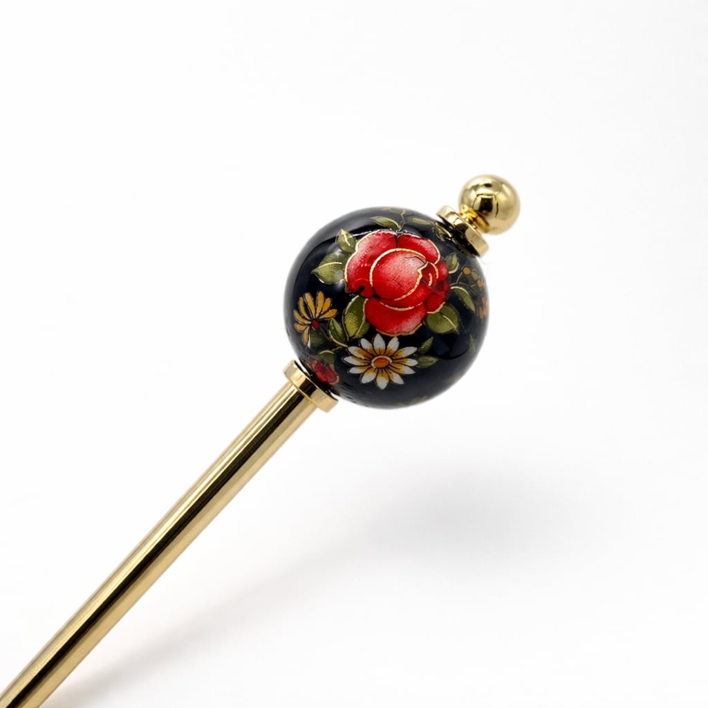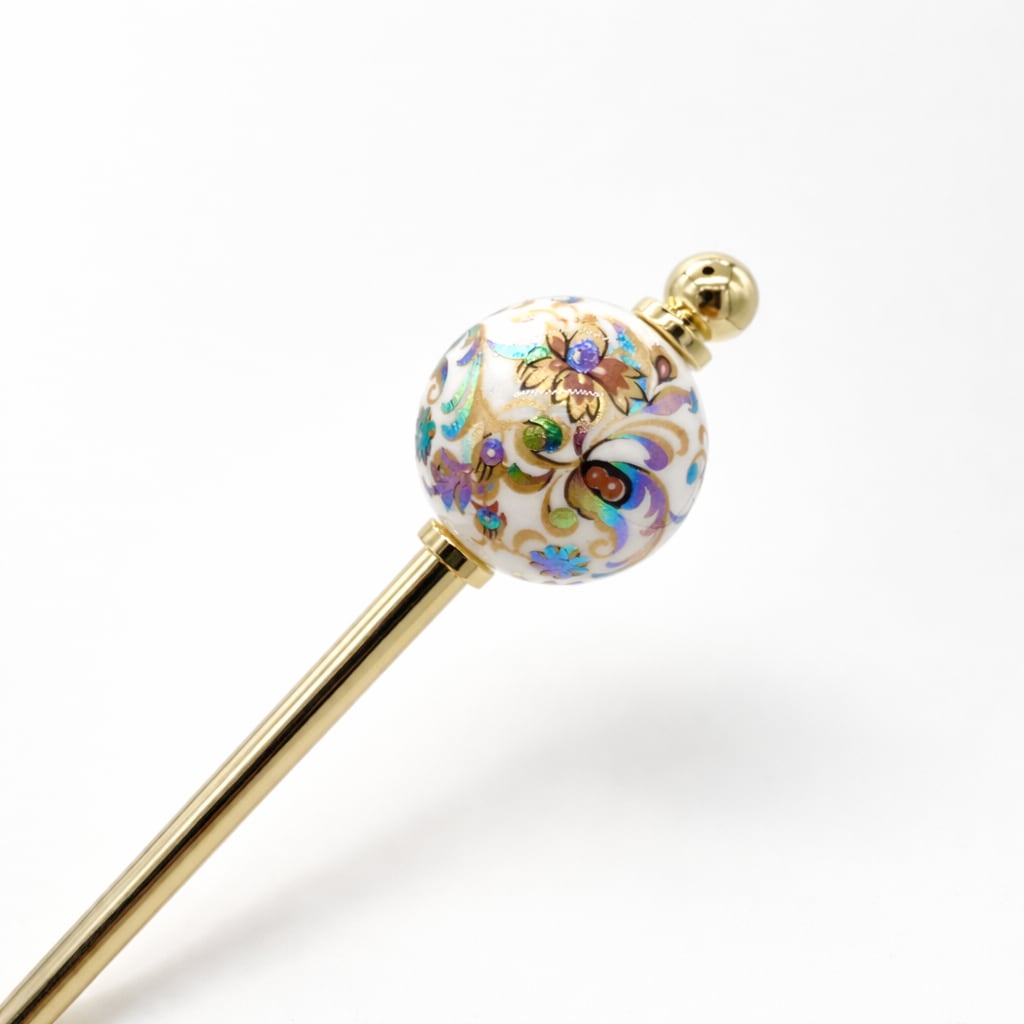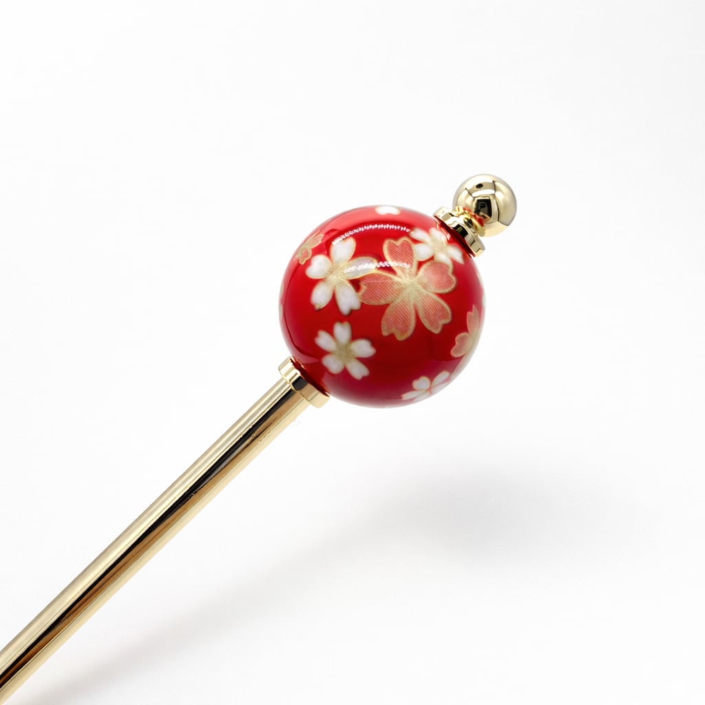 熟練の技で丁寧に描かれた「トンボ玉」に、日本人に愛され続ける伝統的な和の模様を閉じ込めた、気品あふれるかんざしです。