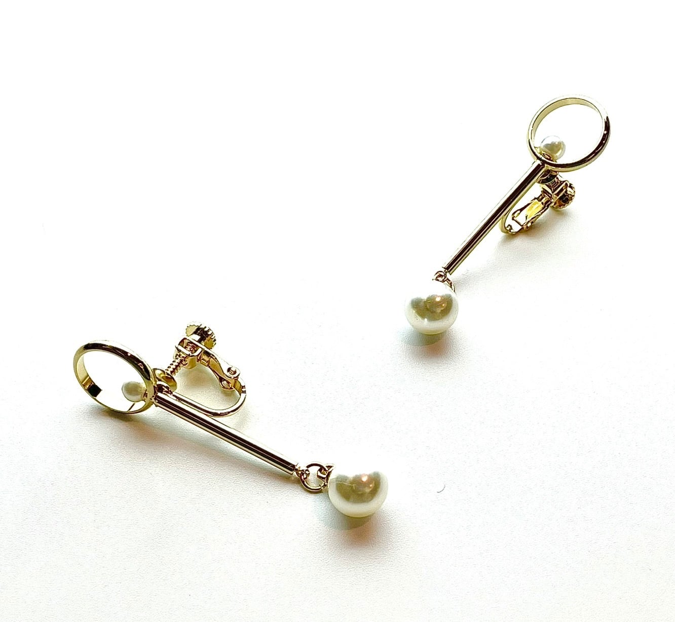 耳元に小ぶりなパール付リングが添えられたデザイン性あふれるイヤリングです。 メタルが主役のスティックと揺れるパールは顔まわりを明るく、鮮やかに彩る。 Noire Neigeらしいシンプルでスタイリッシュな一品をぜひご堪能ください。