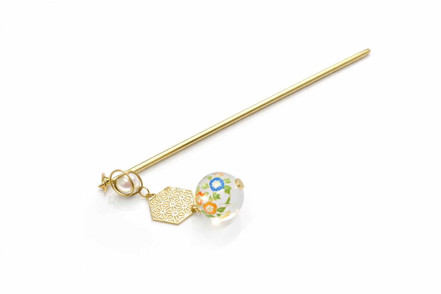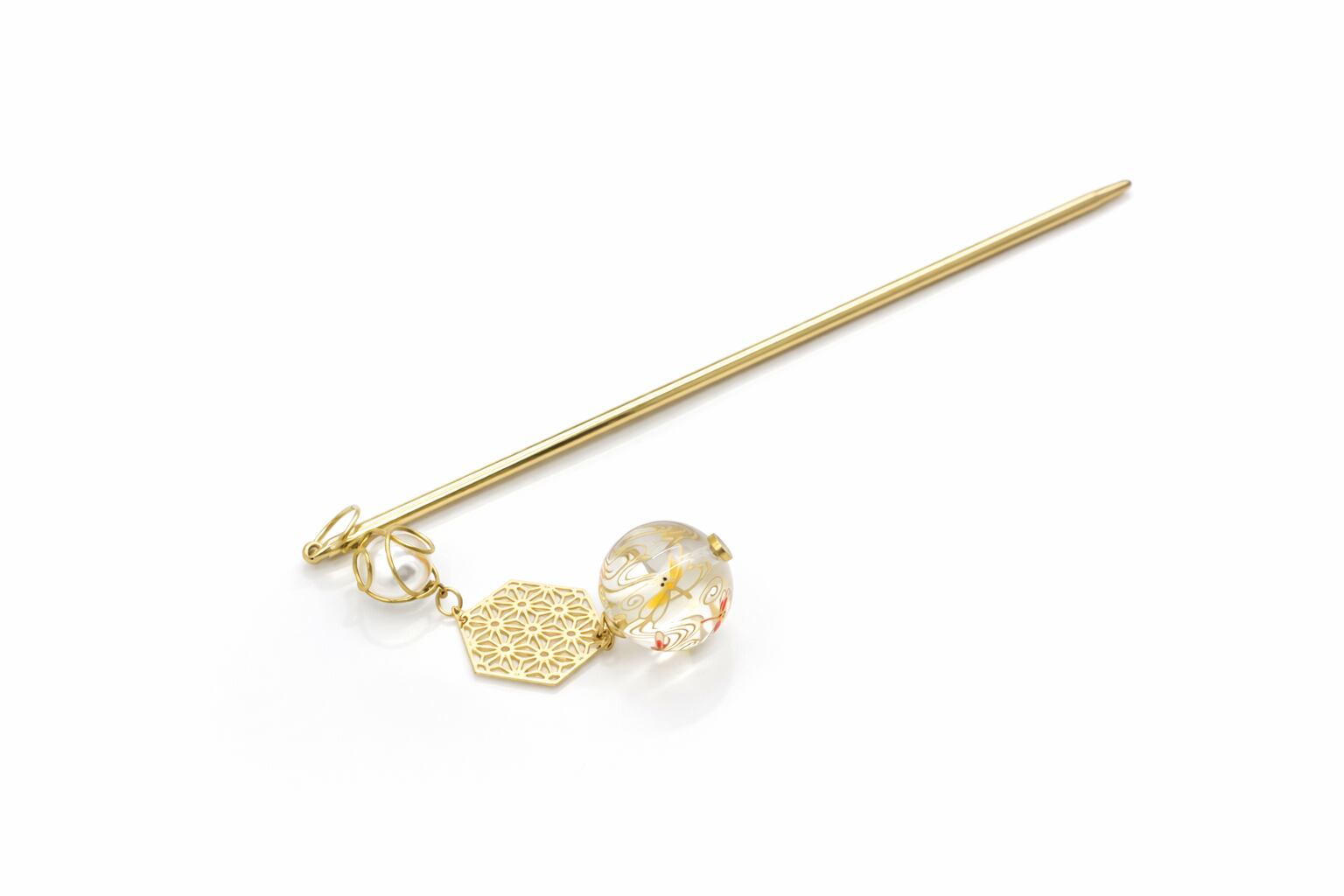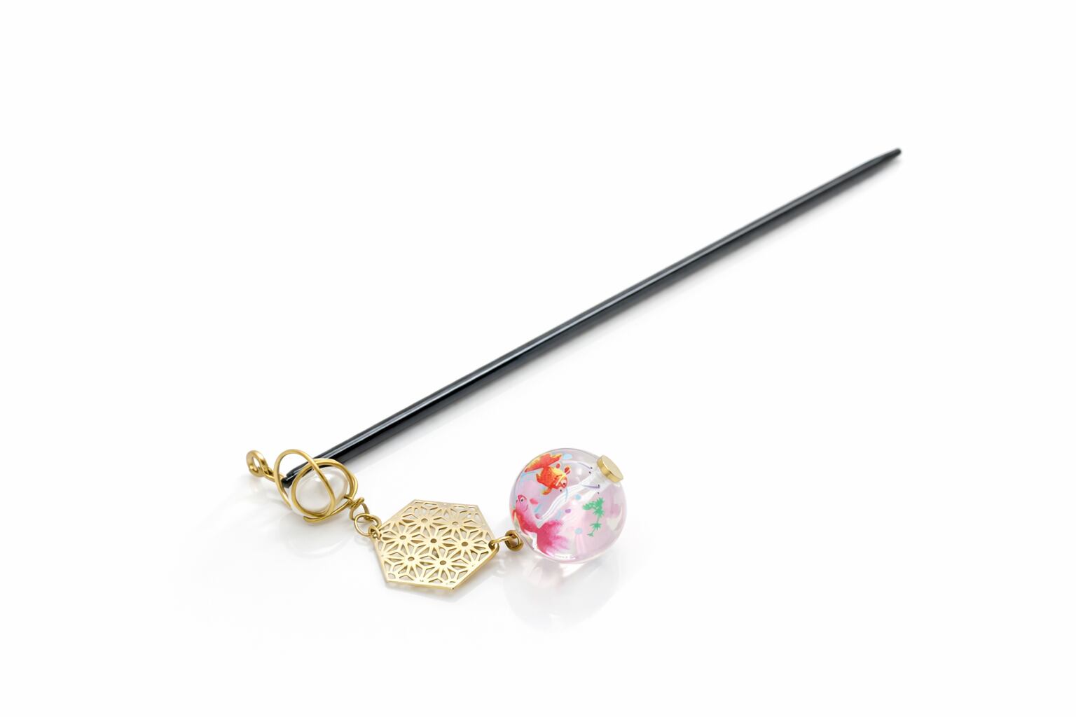 伝統的な技法で作られた「トンボ玉」に、日本人に馴染み深い和のモチーフを閉じ込めた、風情あふれるかんざしです。