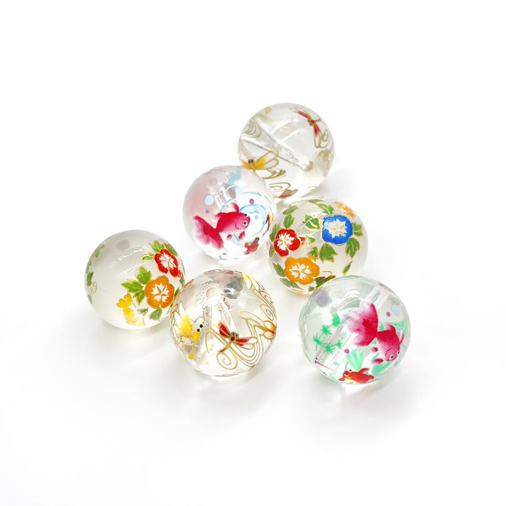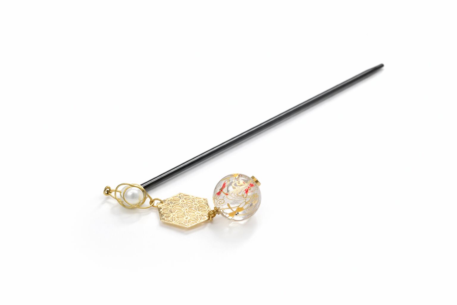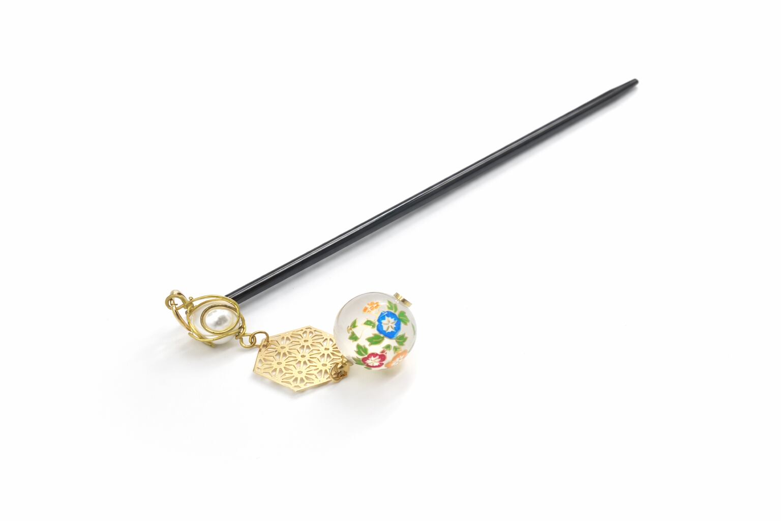 伝統的な技法で作られた「トンボ玉」に、日本人に馴染み深い和のモチーフを閉じ込めた、風情あふれるかんざしです。