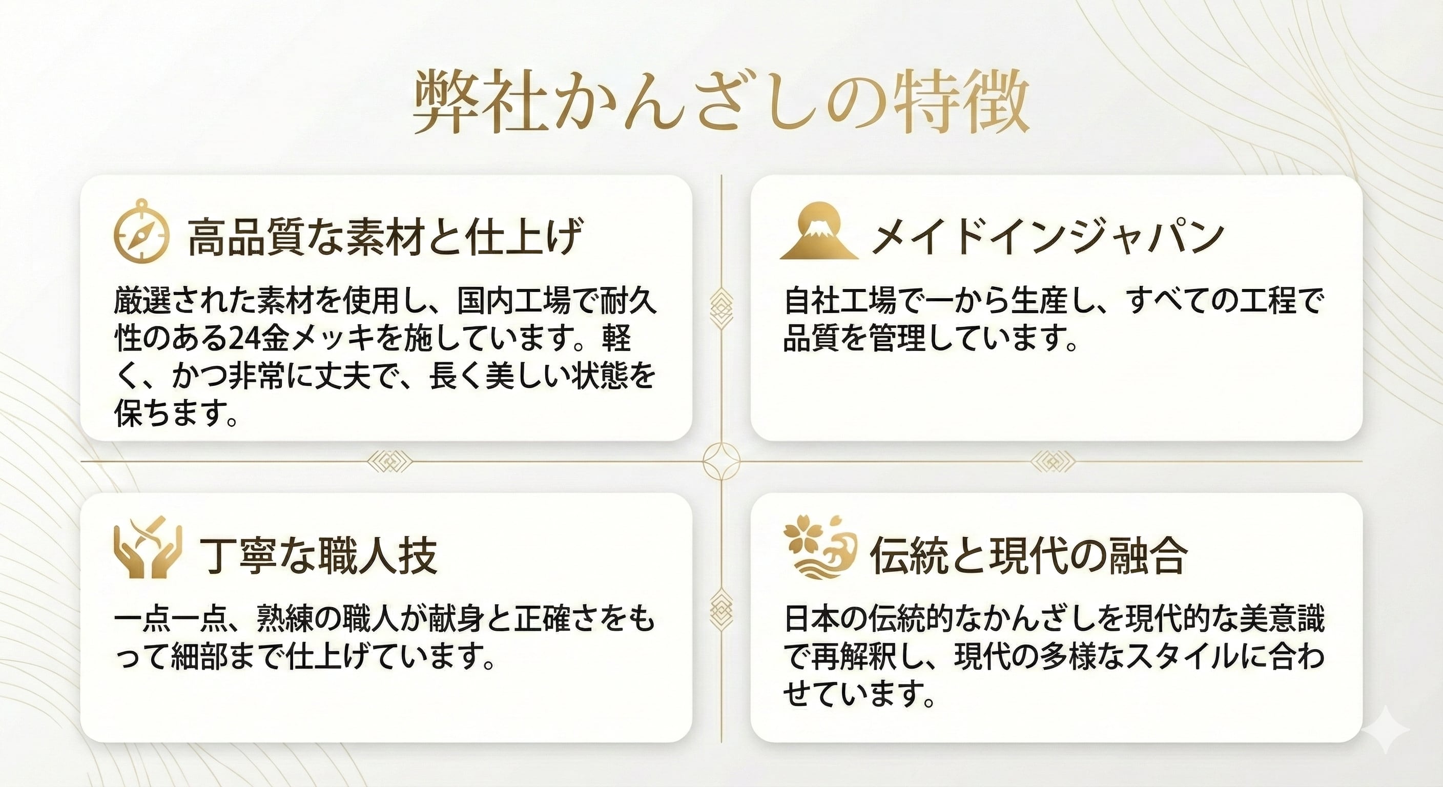 かんざしは、花束のように枯れず、アクセサリーのように色あせない、ずっと手元に残る贈り物です。