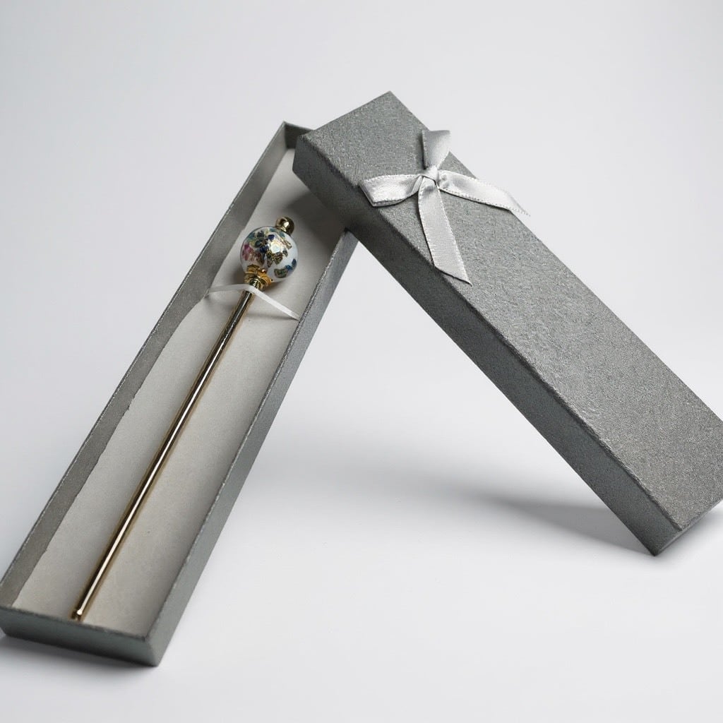それぞれの簪には、精緻な花模様があしらわれた伝統的なビーズが付いており、3つのデザインからお選びいただけます。