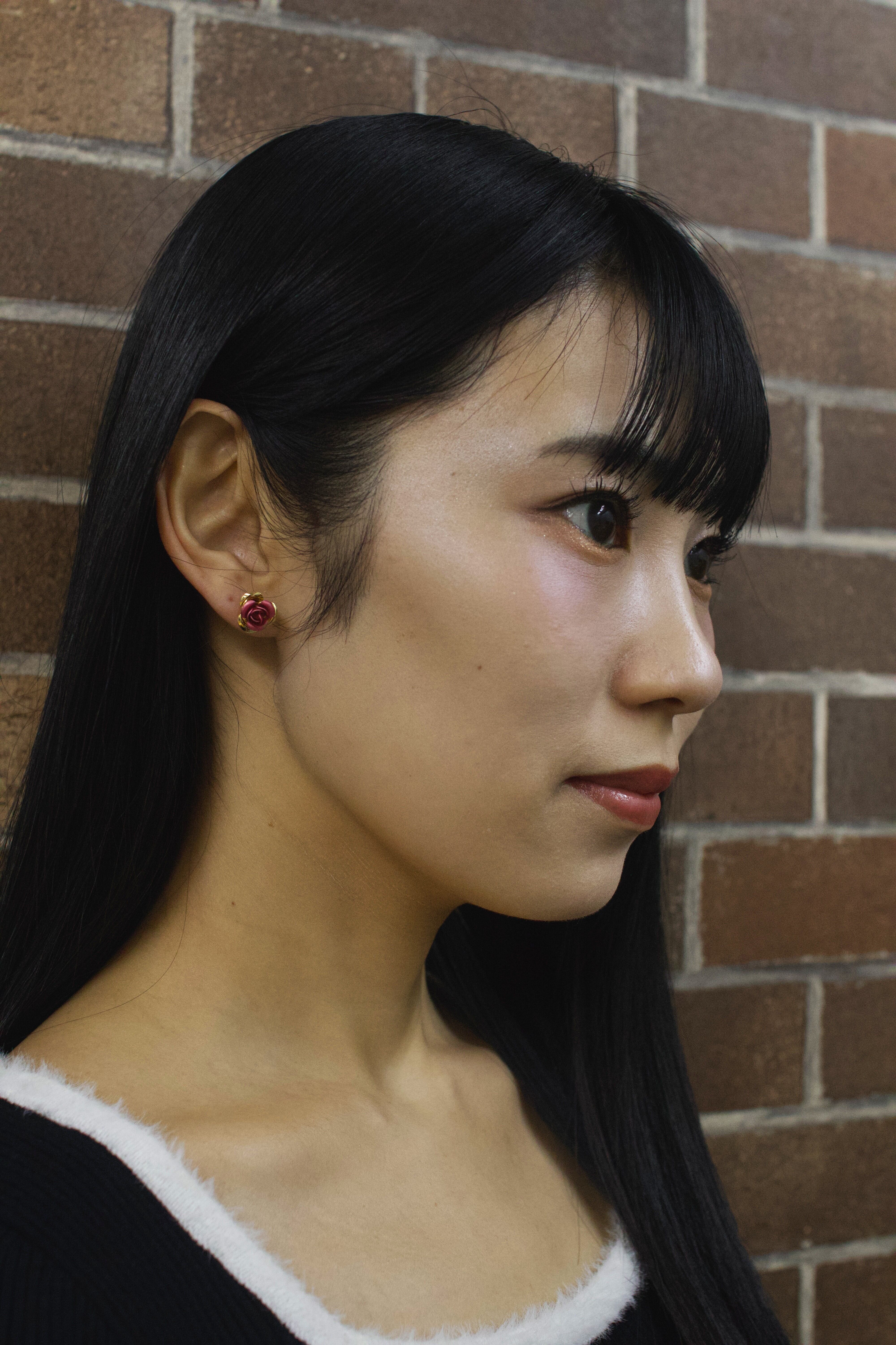 小さいながらも目を引く二色のバラアクセサリーは、普段使いにも特別な機会にも最適です。