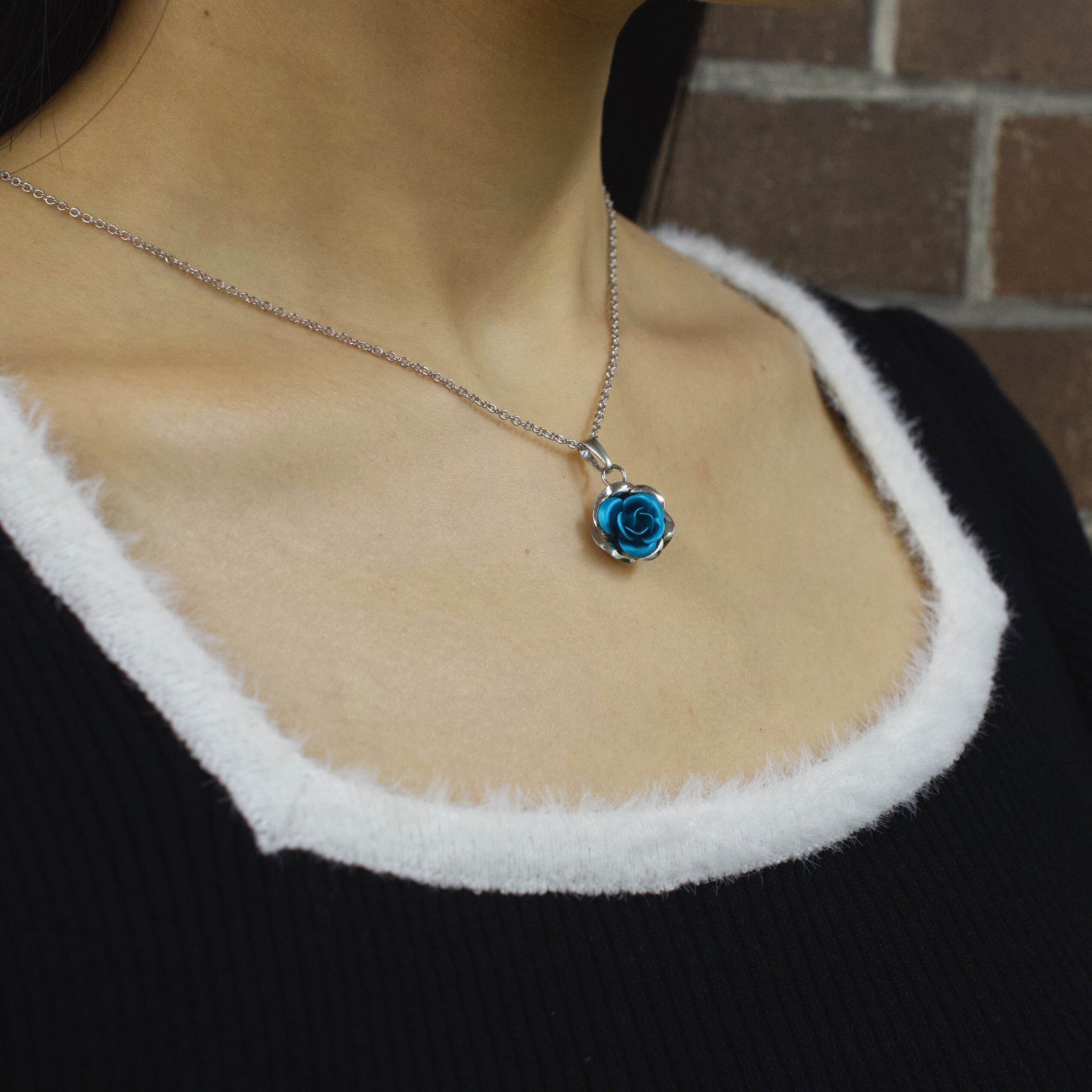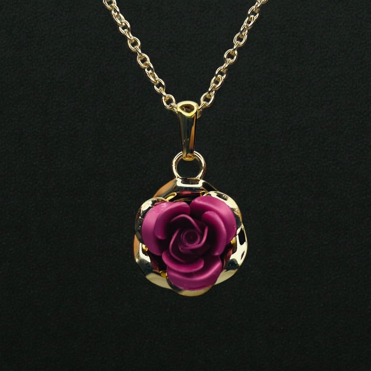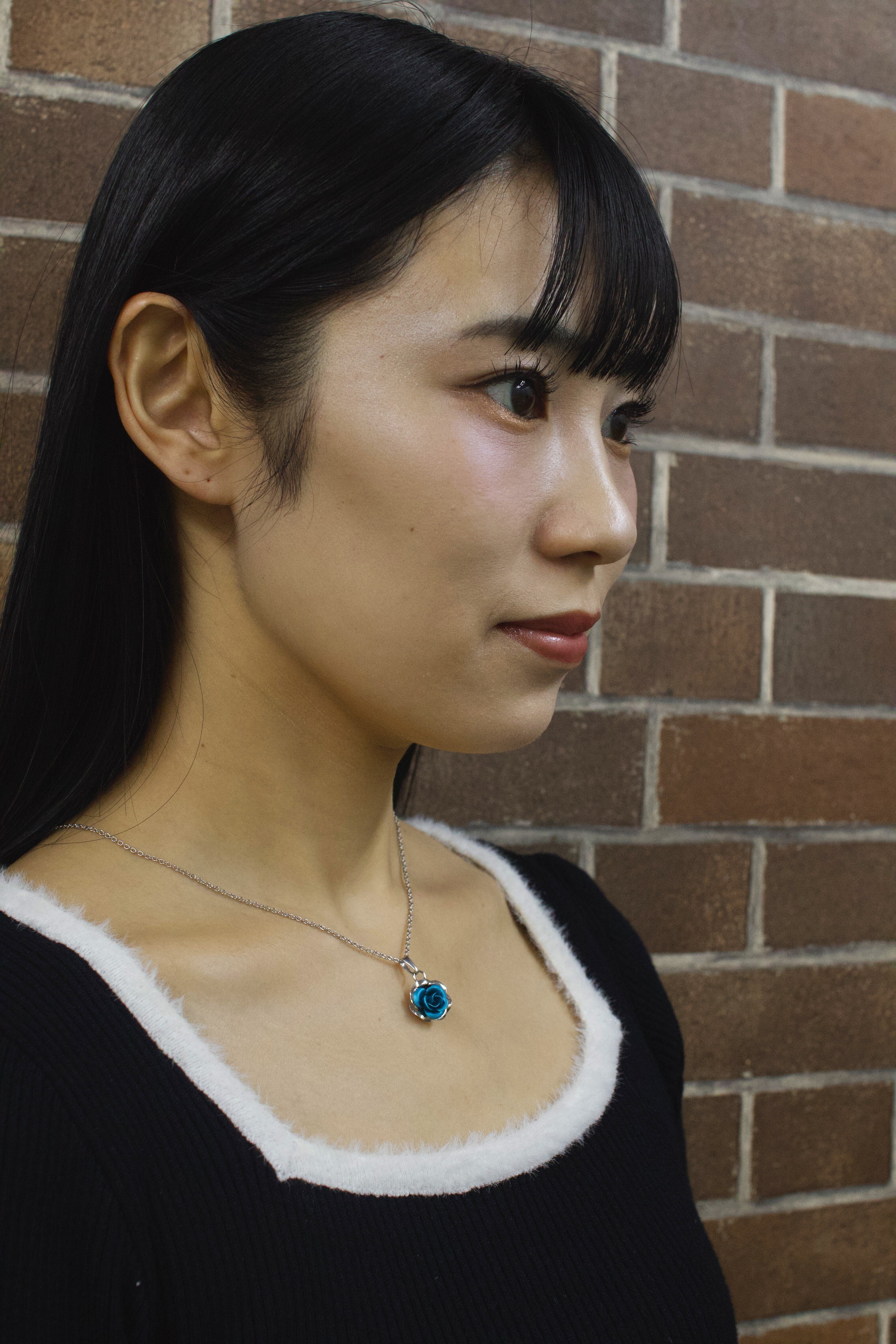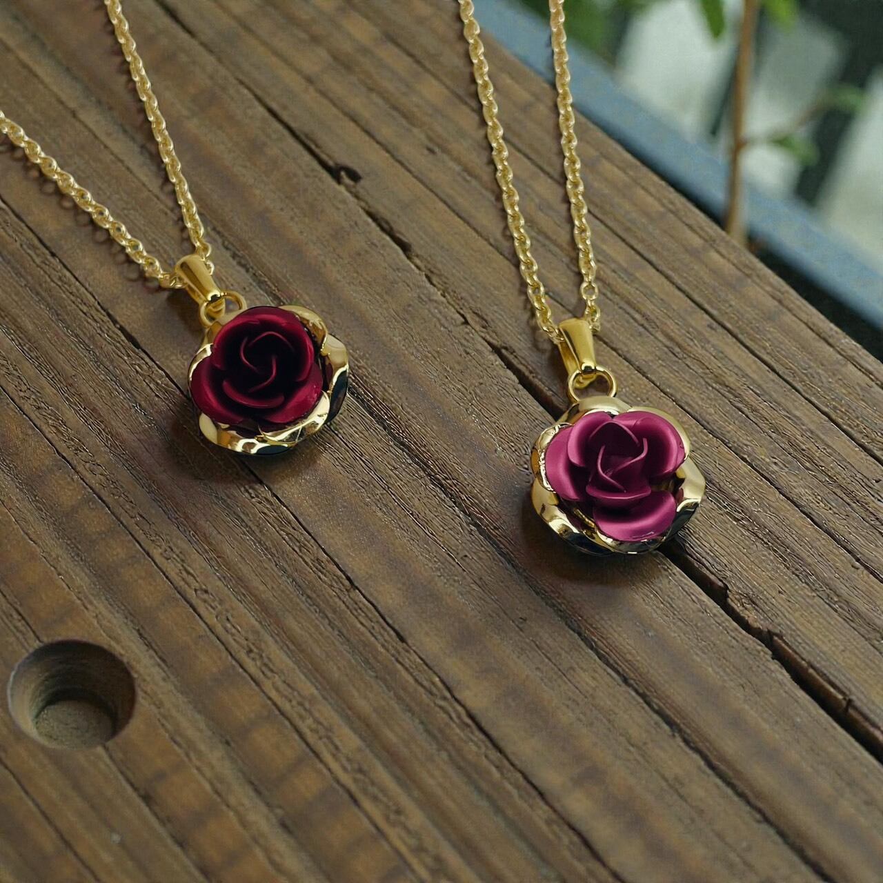 二重カラーのメタルローズネックレス|色鮮やかなフラワーペンダント