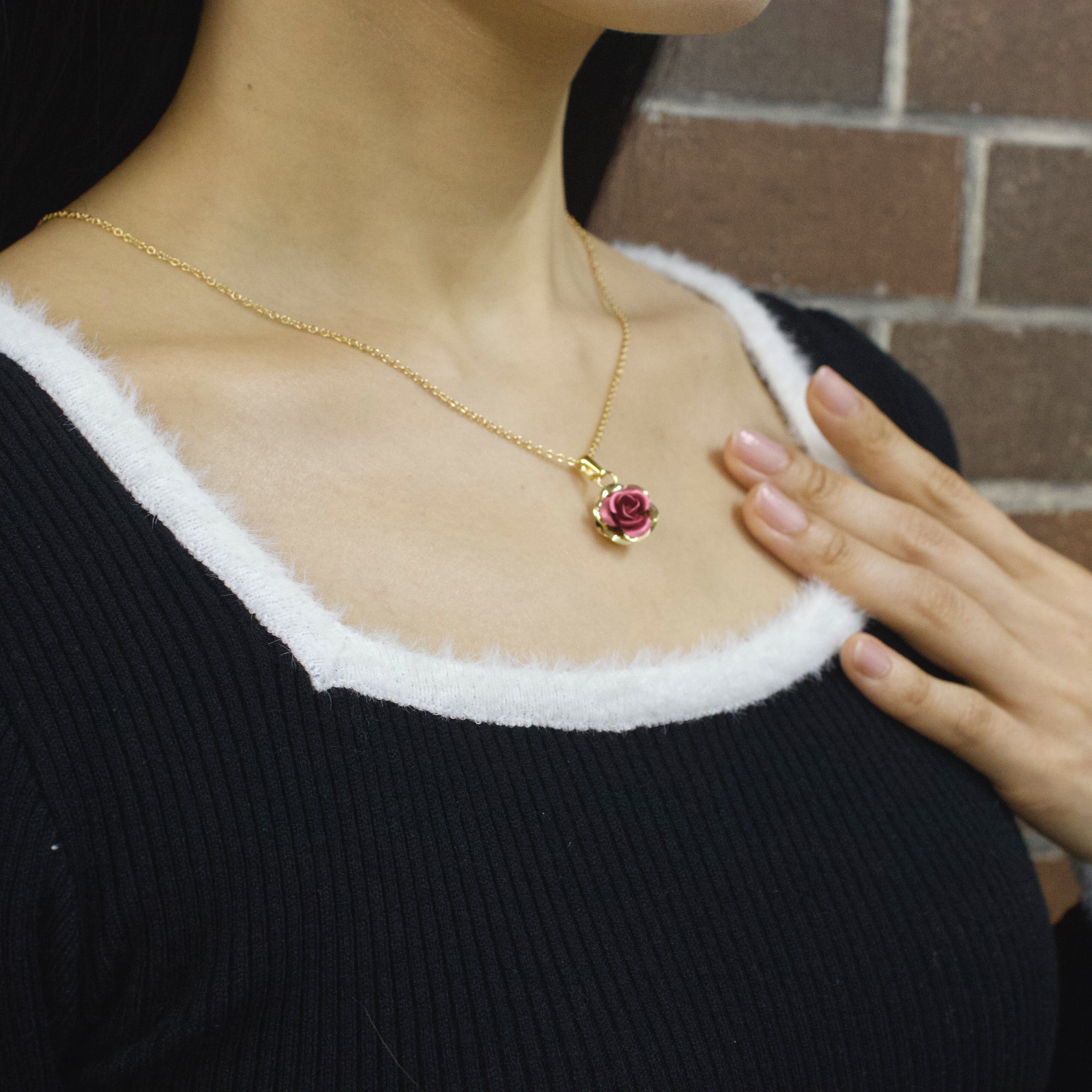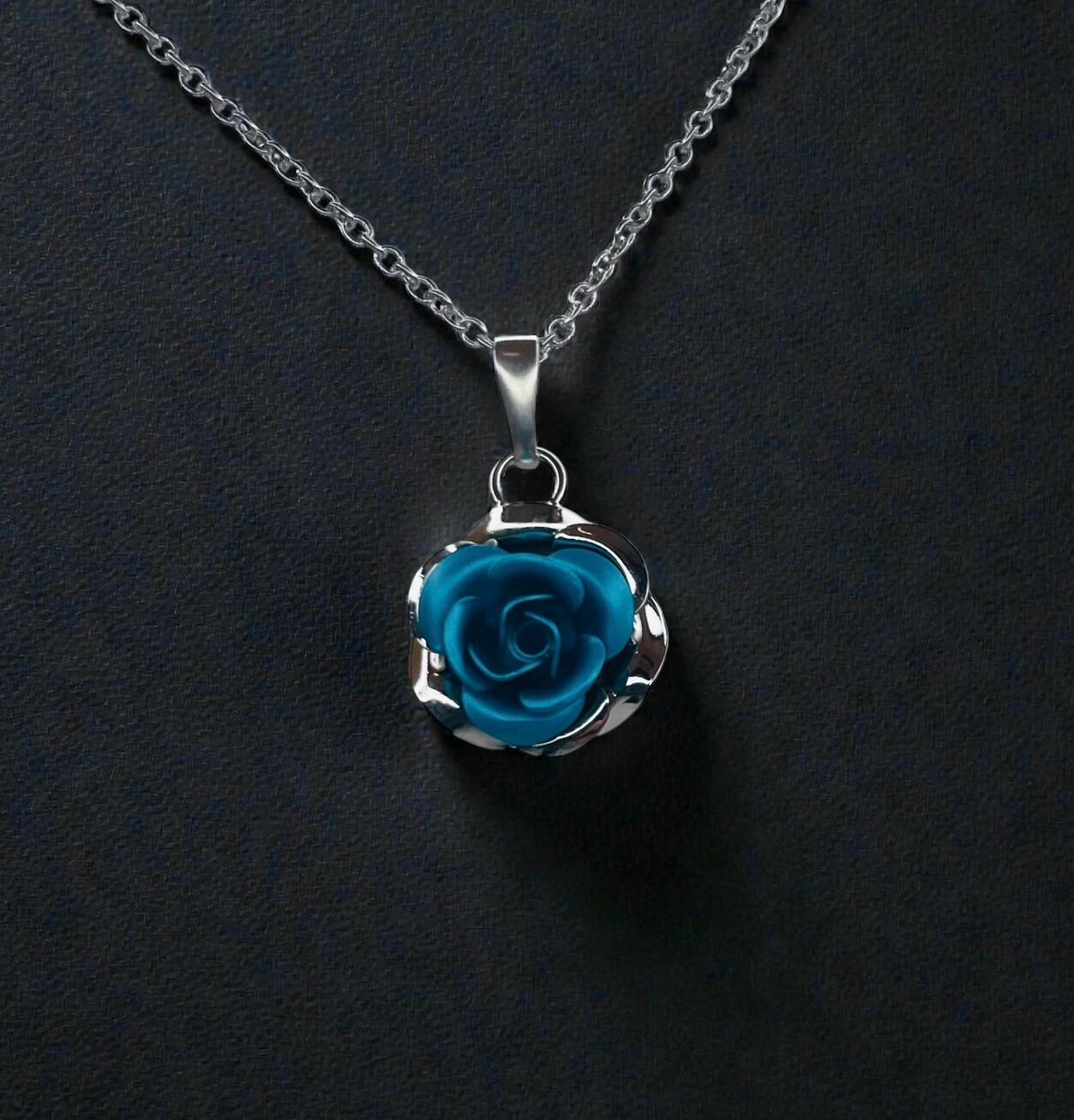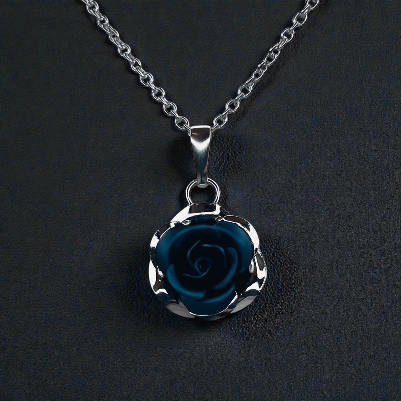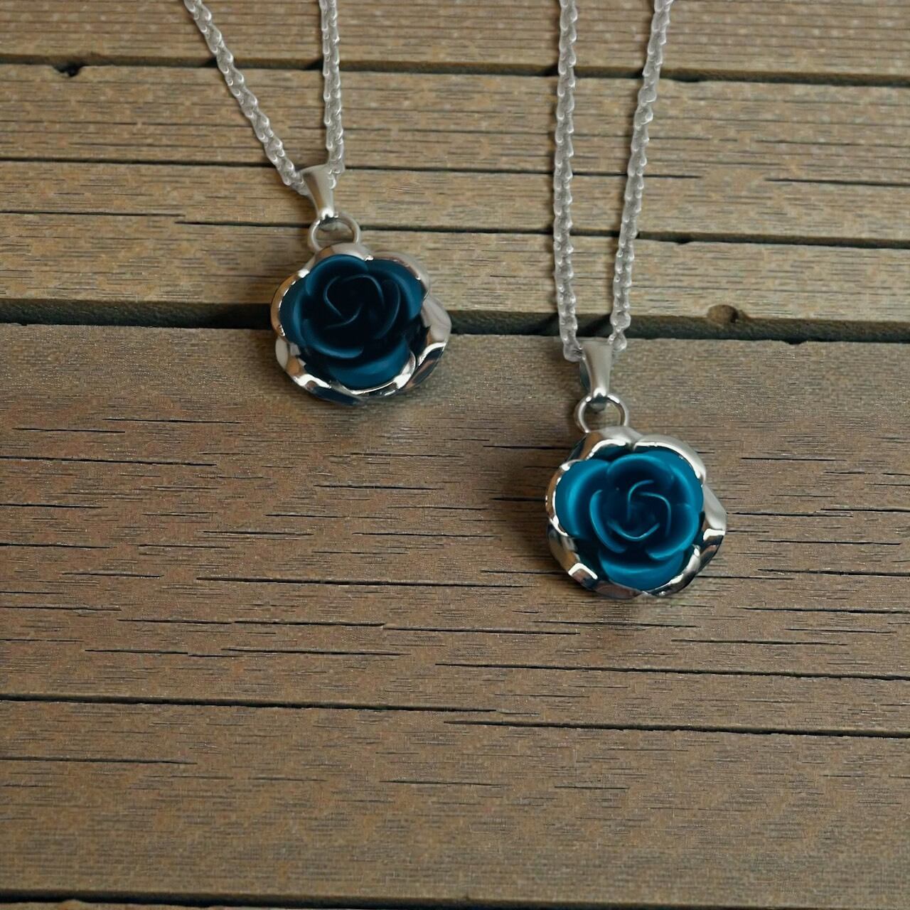 二重カラーのメタルローズネックレス|色鮮やかなフラワーペンダント