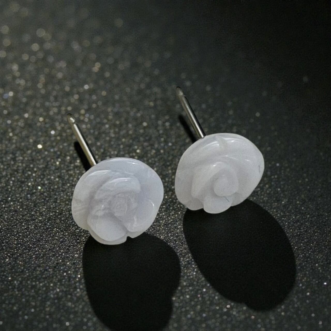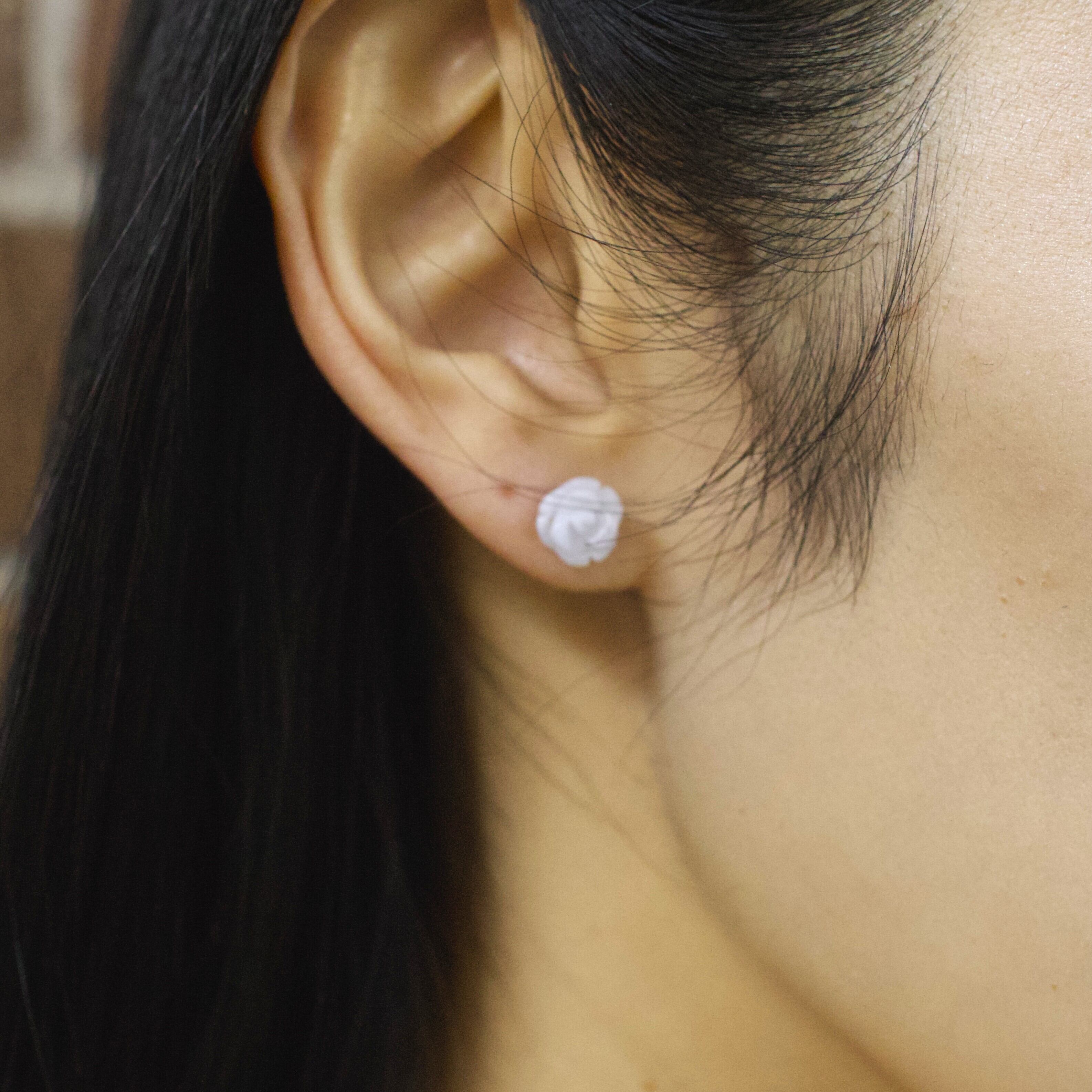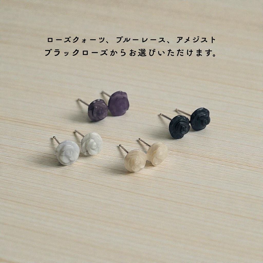 天然石の手彫りバラピアス|ローズクォーツ/アメジスト/ブルーレース/ブラック | 8mmフラワーピアス