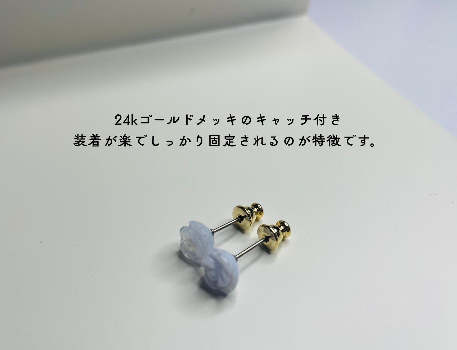 天然石ならではの繊細なストライプ、透明感、深みのある色合いに、立体感のある花びらが加わり、耳元に柔らかな輝きを添えます。