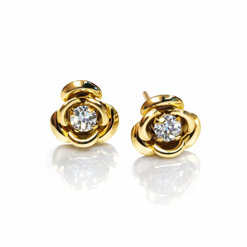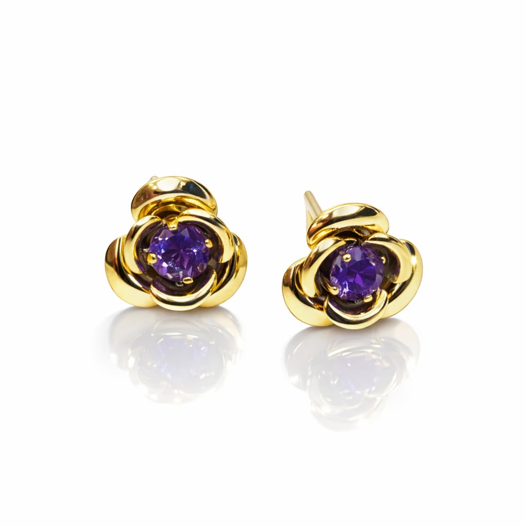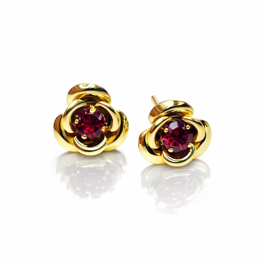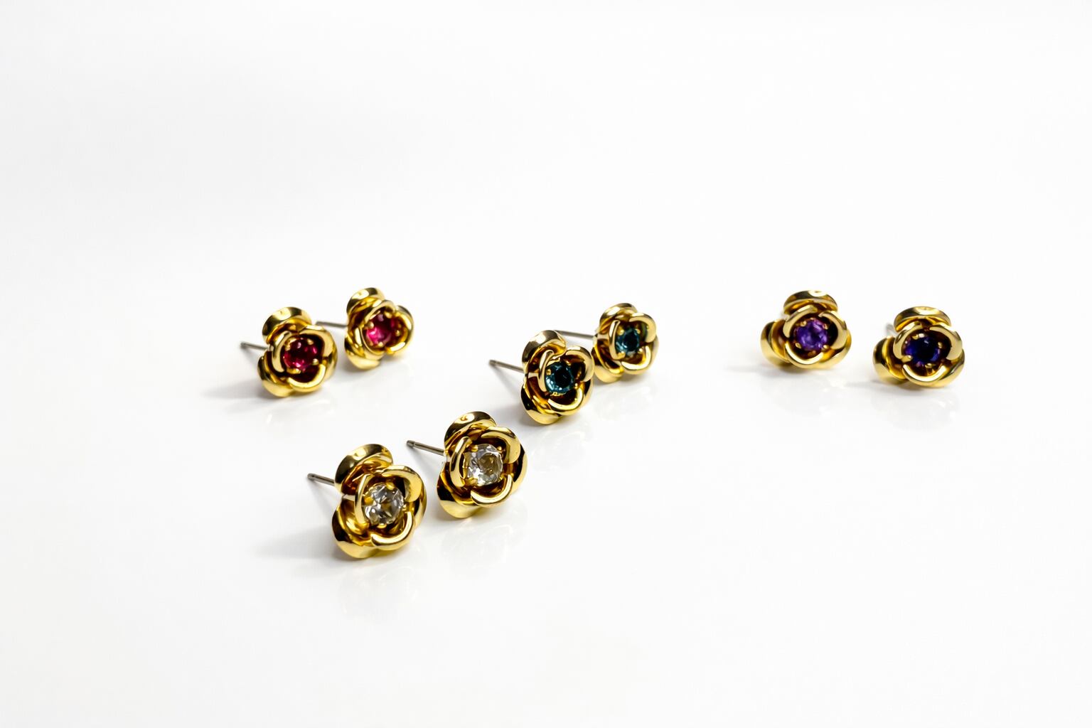 宝石付きゴールドローズピアス|ガーネット/アメジスト/ブルートパーズ/アクアマリン