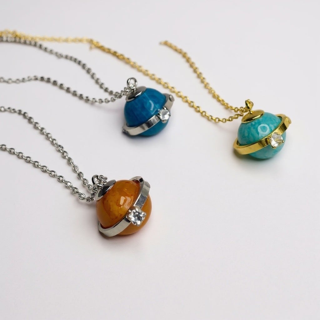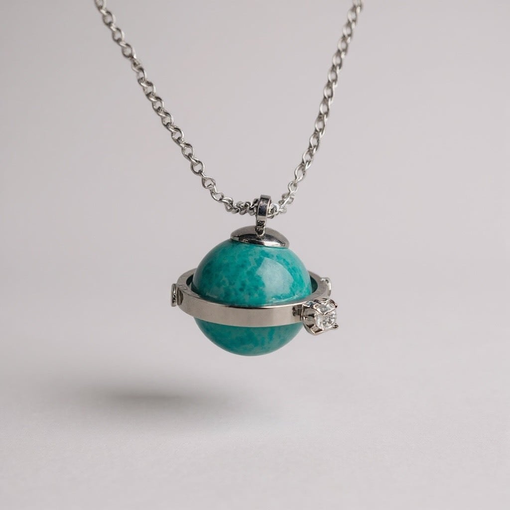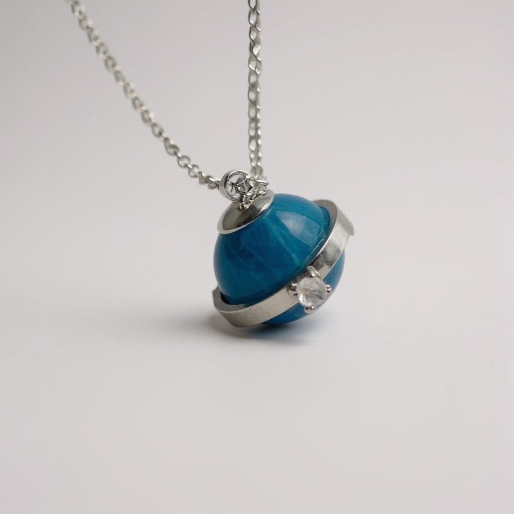 惑星軌道ネックレス | 天然石惑星ジュエリー | アクアマリン付き