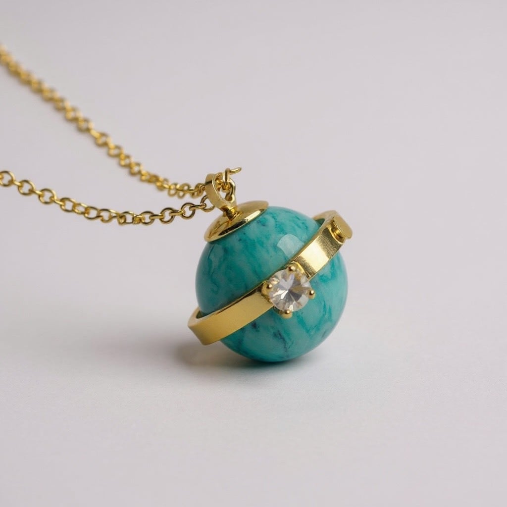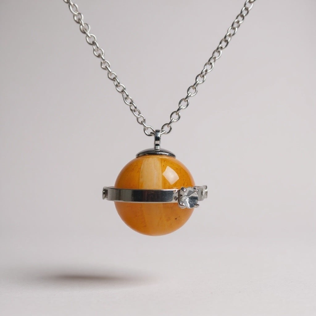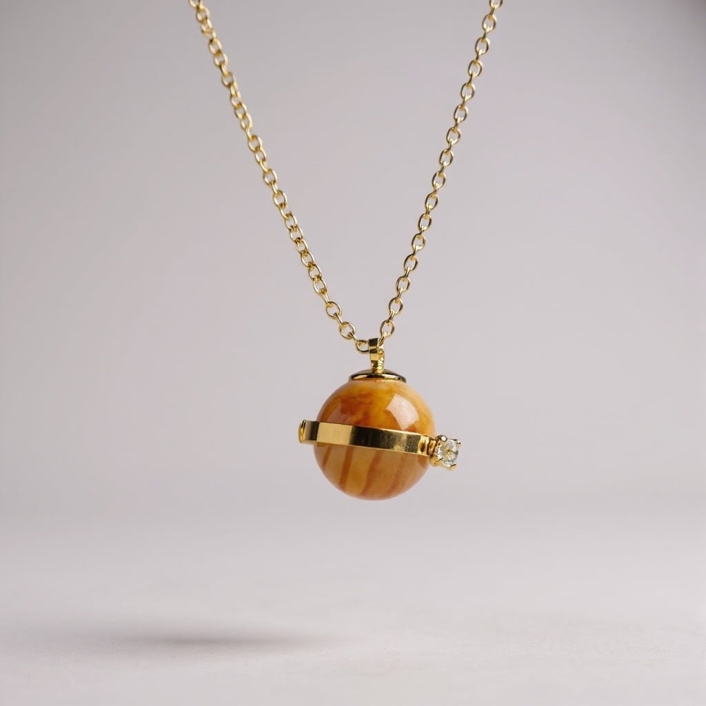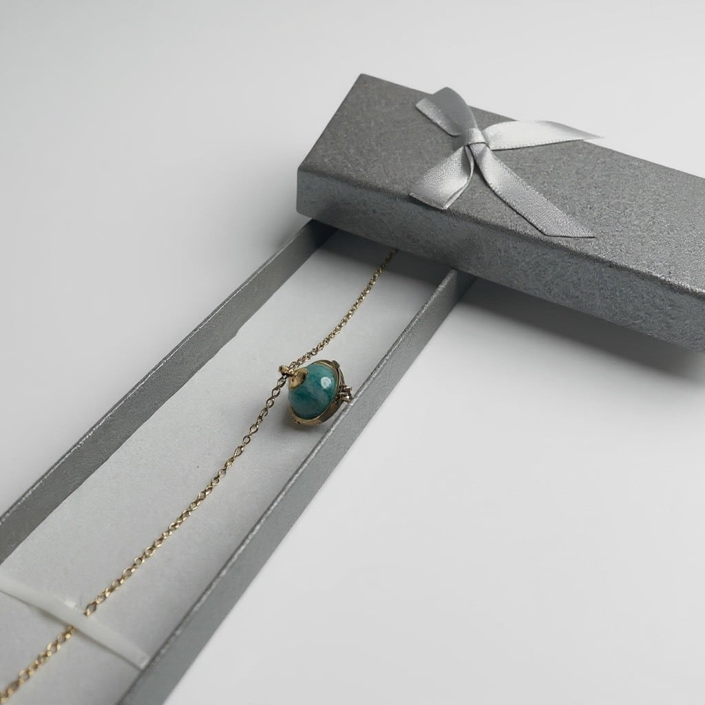 惑星軌道ネックレス | 天然石惑星ジュエリー | アクアマリン付き