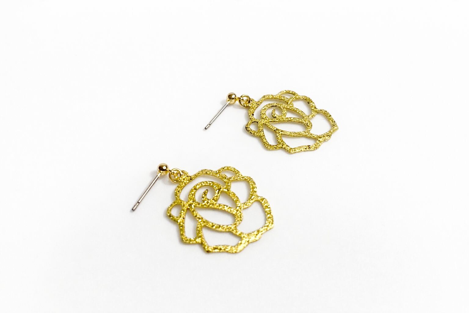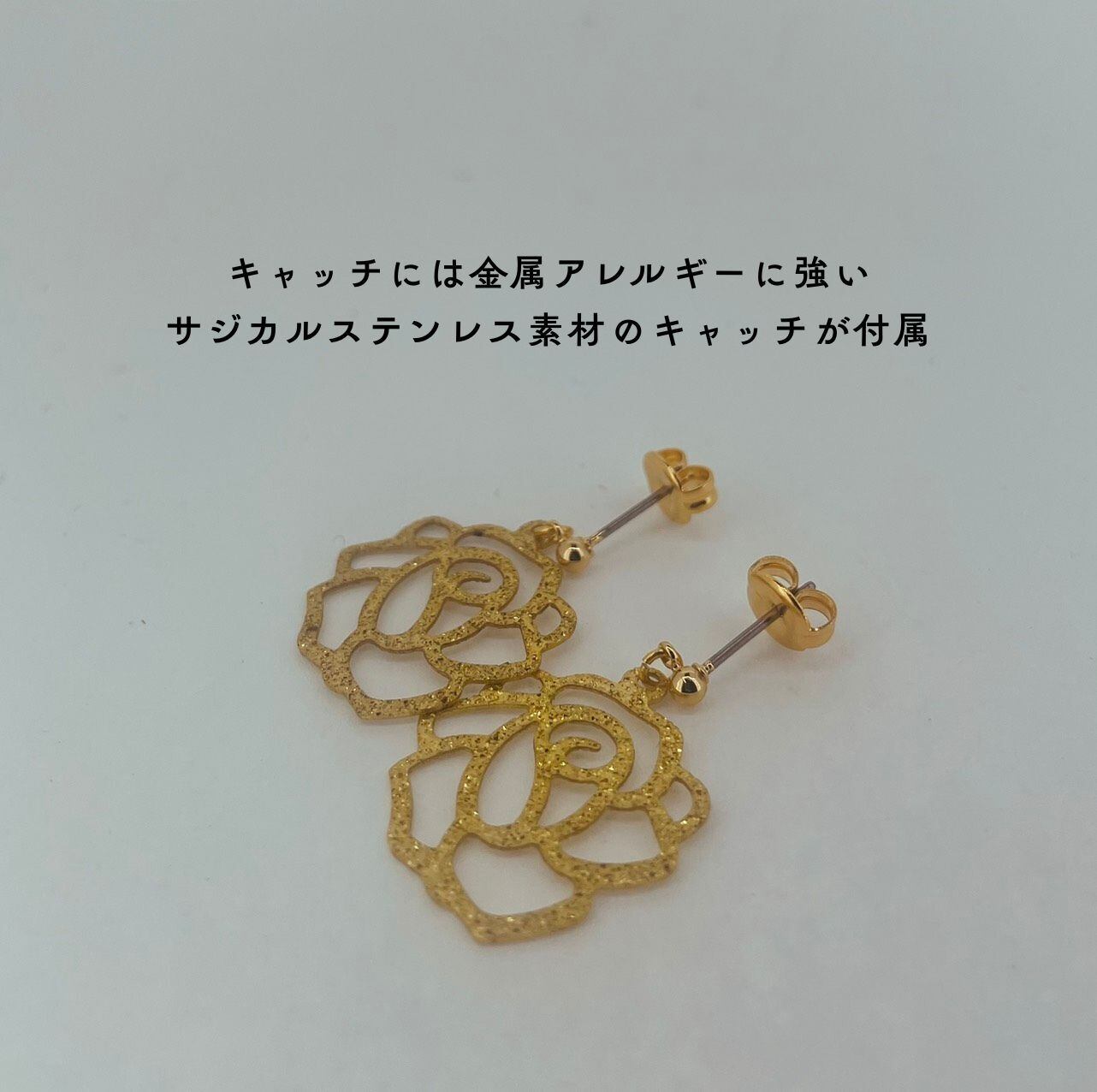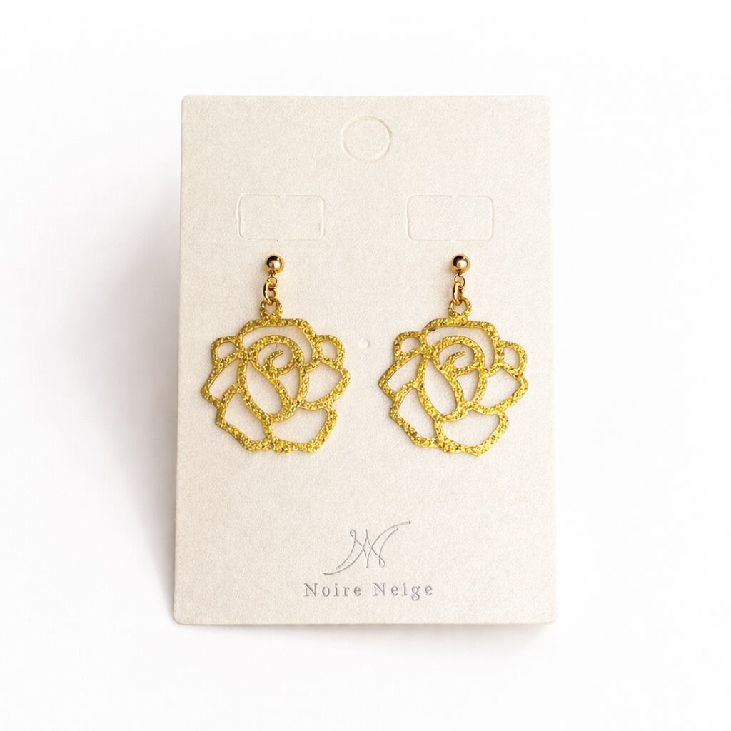 夜空に瞬く星屑を閉じ込めたような、スターダスト仕上げのバラモチーフピアス。