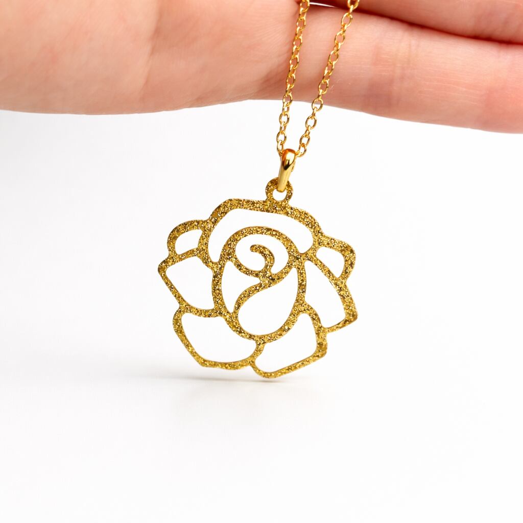 スターダスト加工が美しくきらめく、バラモチーフのネックレス。