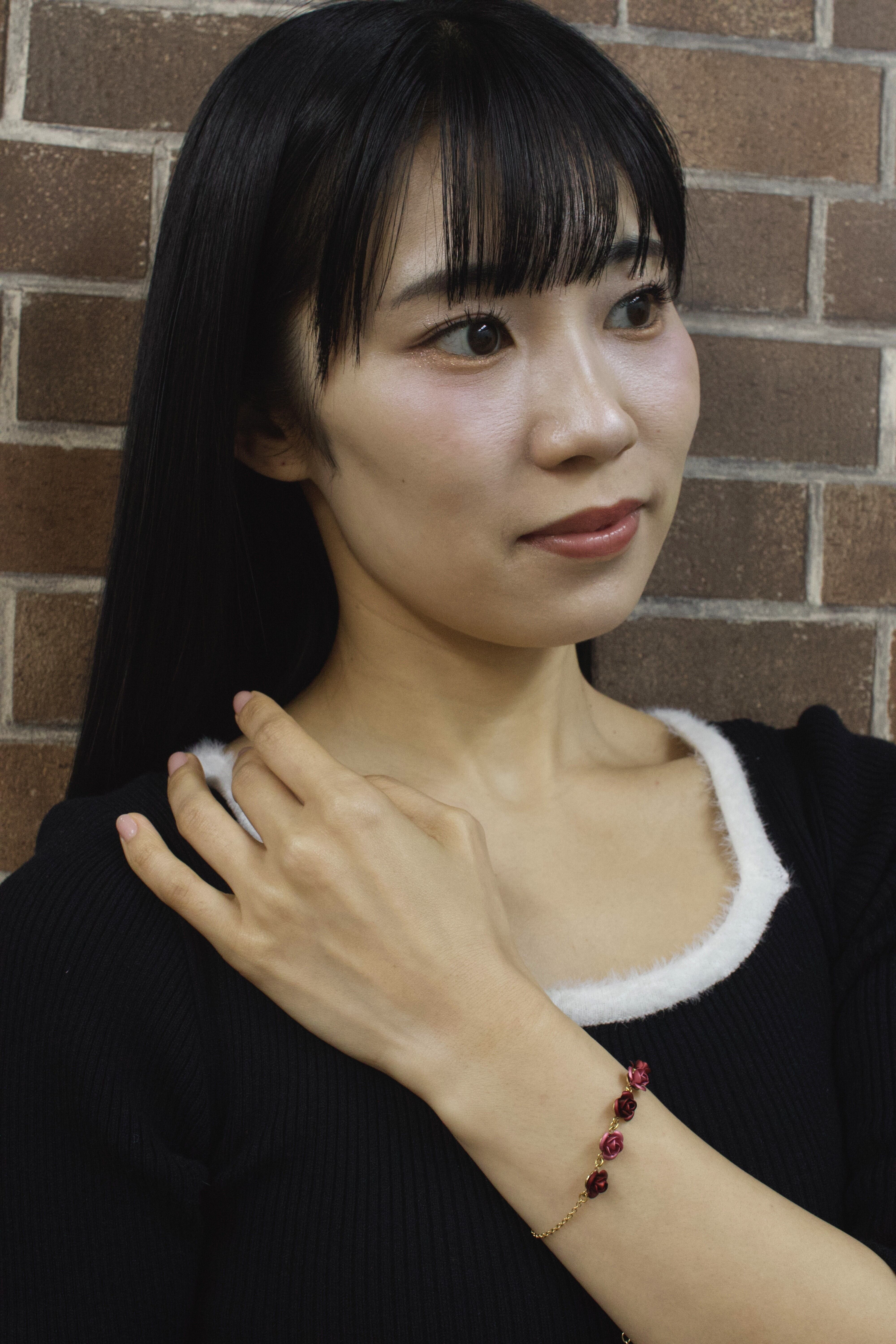 赤とピンクのバラが交互に並ぶ、華やかで上品なローズブレスレット。