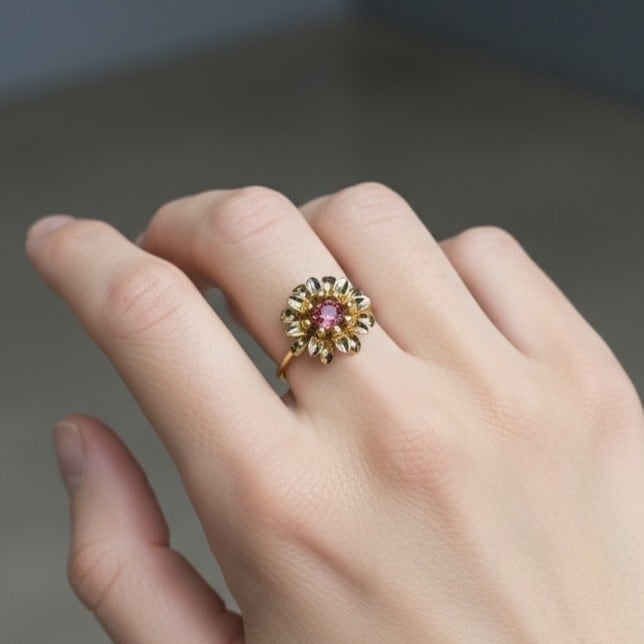 宝石付き菊の花の指輪 | ヴィンテージフラワージュエリー