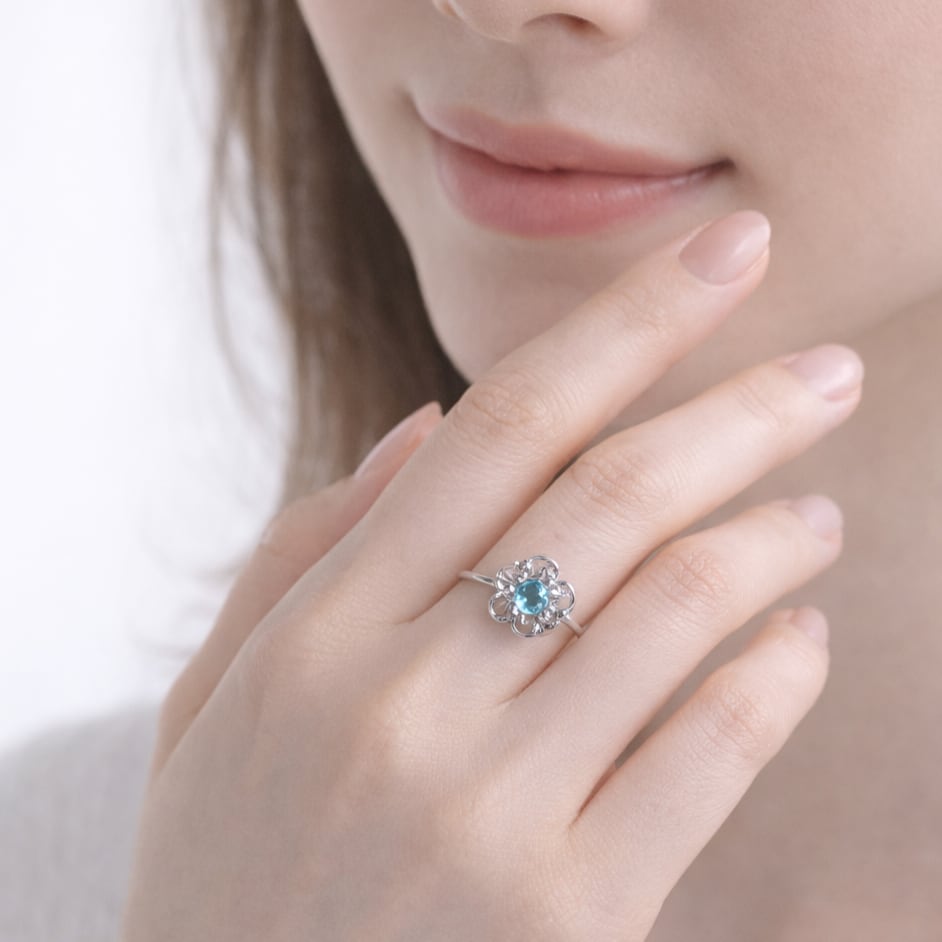 繊細に作られたシルバーの花びらの中央に、きらめく誕生石をセッティングした特別なリングです。