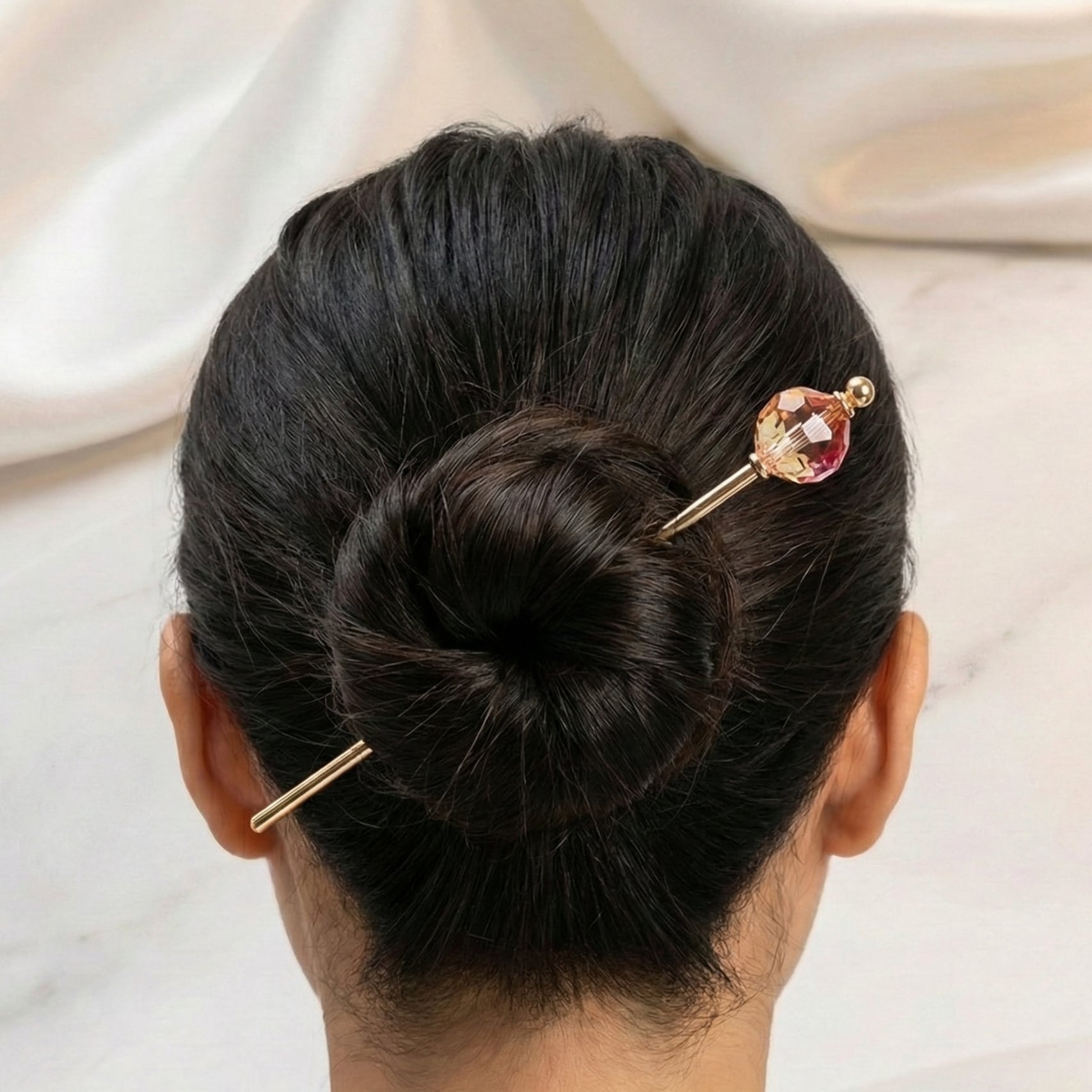 結婚式やデートの夜、あるいは普段のスタイルをワンランクアップさせたい時など、どんな装いにもさりげないラグジュアリーな雰囲気を添えてくれるかんざしです。