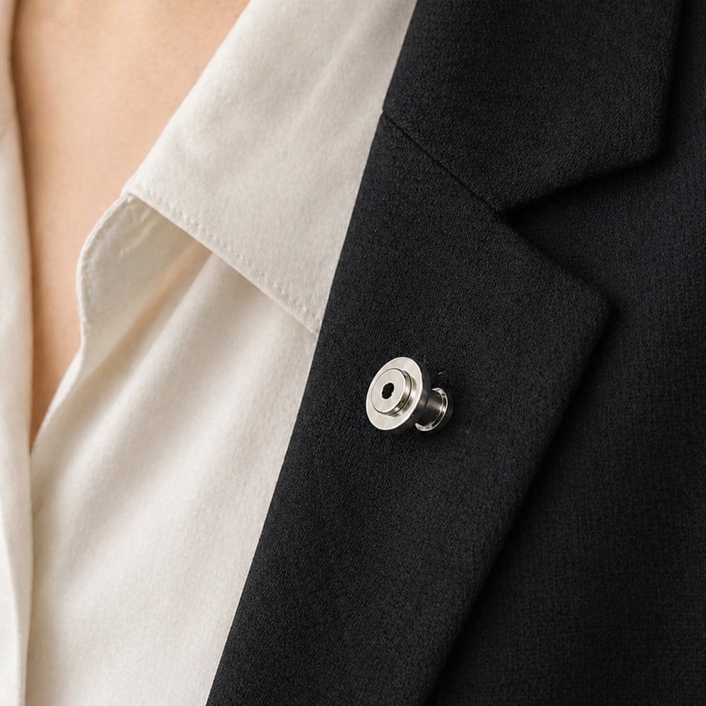 このコンバーターを使えば、お気に入りのピンバッジをスタイリッシュなブローチとして、服を傷つけることなく身につけることができます。
