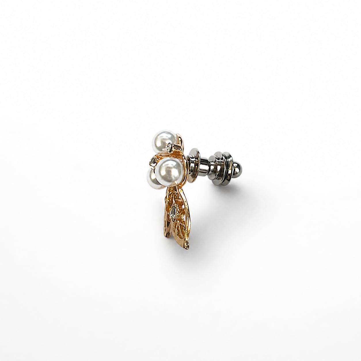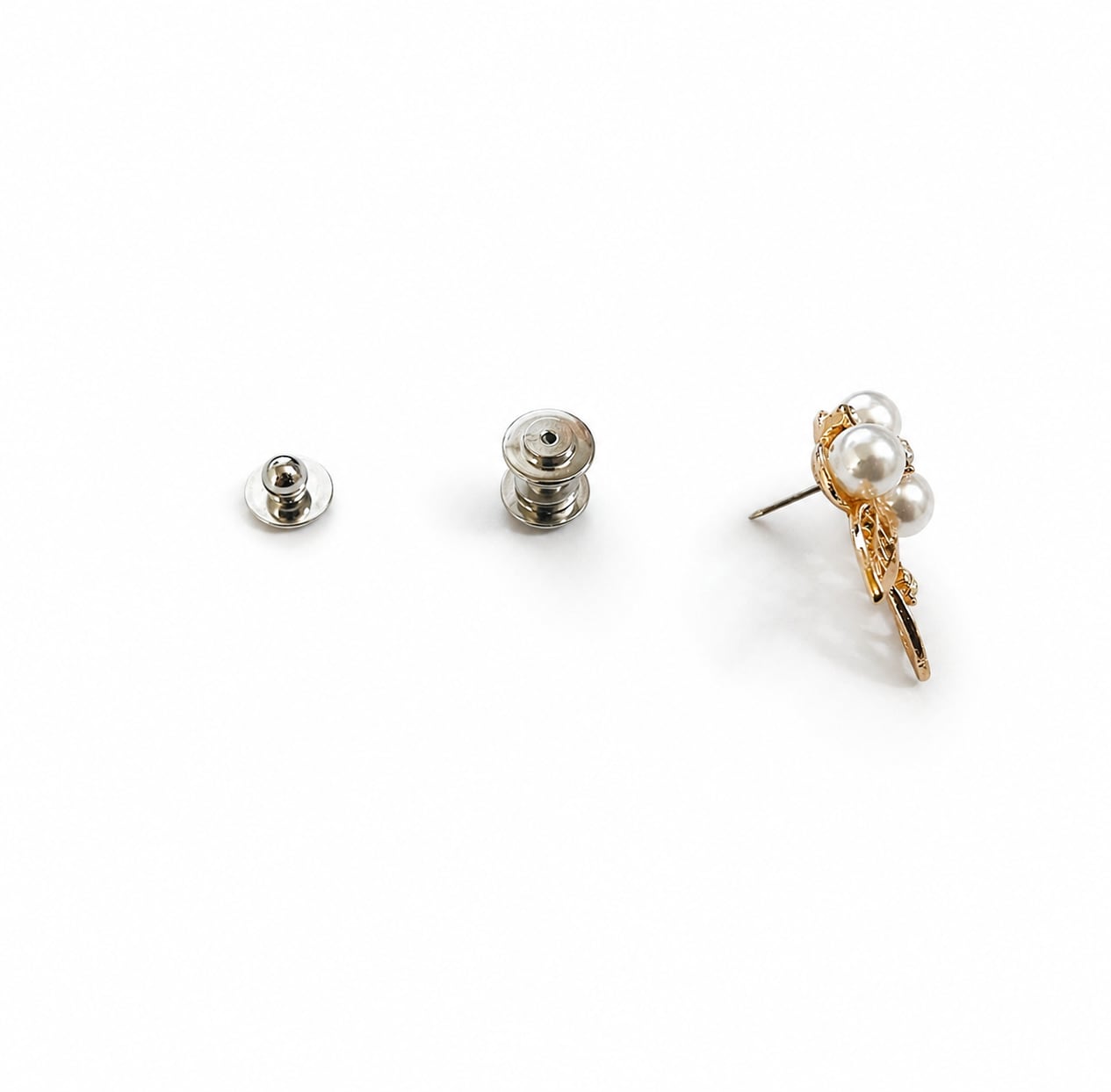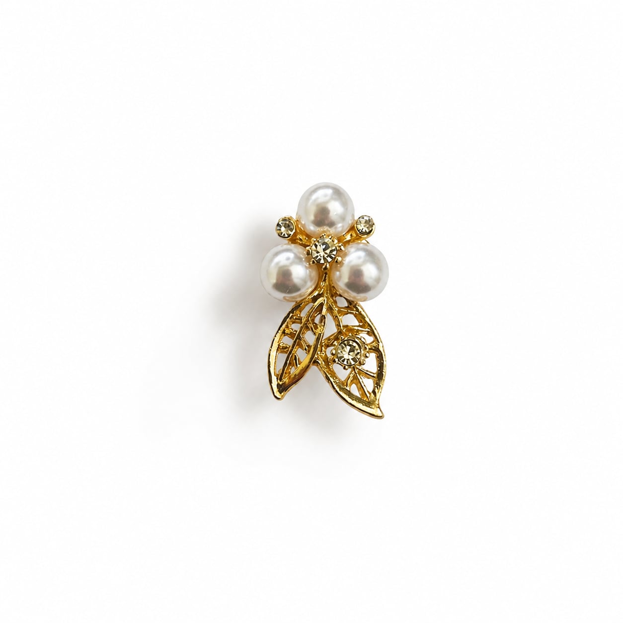 繊細なパールとラインストーンが輝く、上品なゴールドカラーのマグネットブローチ。